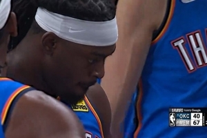 比賽第二節(jié),雷霆球員多特在防守時(shí)失衡撞翻飛在空中的莫蘭特,后者正面平拍倒地,目前已經(jīng)返回更衣室。