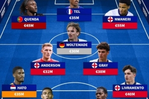 前鋒:昆達(dá)(葡萄牙,4500萬歐元)、特爾(法國,3500萬歐元)、恩瓦內(nèi)里(英格蘭,5500萬歐元)