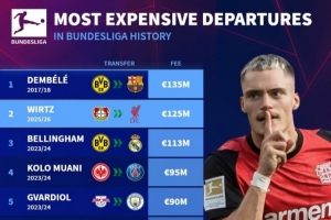 體育資訊6月21日訊 德國轉(zhuǎn)會市場盤點(diǎn)了德甲球員轉(zhuǎn)出費(fèi)用排名,1.25億歐元加盟利物浦的維爾茨僅排第二。