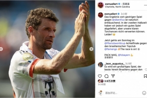 體育資訊6月25日訊 世俱杯小組賽,C組第3輪,拜仁0比1不敵本菲卡。賽后,穆勒更新社媒鼓勵球隊在淘汰賽中繼續(xù)前進。