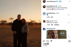 德布勞內(nèi)更新社媒,慶祝自己結(jié)婚八周年