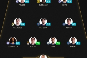 前鋒:帕爾默(切爾西,8.8分)、吉拉西(多特,8.5分)、內(nèi)托(切爾西,8.6分)