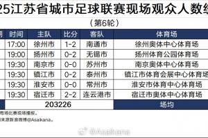 體育資訊07月06日訊 江蘇省城市足球聯(lián)賽第六輪戰(zhàn)罷,德轉(zhuǎn)朱藝統(tǒng)計了本輪“蘇超”場均觀賽人數(shù)以及總?cè)藬?shù)。值得一提的是,第六輪總計超20萬人現(xiàn)場觀賽,場均人數(shù)為33871,再次刷新了紀(jì)錄。