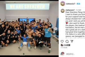 隨后,拉坦齊奧在社媒發(fā)文:“親愛的深圳新鵬城球迷們,我要由衷地感謝你們一直以來給予我的支持和厚愛!我永遠(yuǎn)不會忘記你們,并祝愿你們一切都好??。