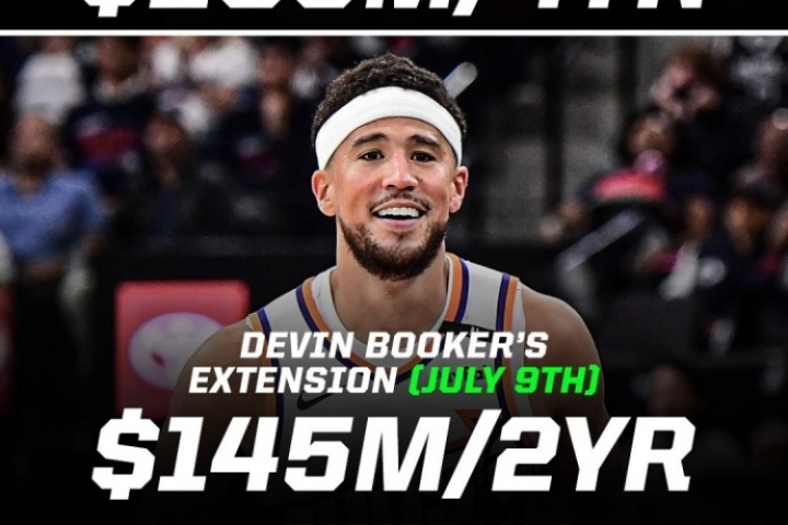 在亞歷山大4年2.87億提前續(xù)約雷霆后的第八天,布克2年1.45億美元頂薪提前續(xù)約太陽。
