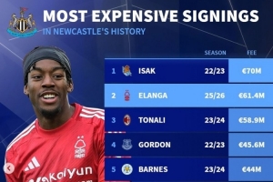 體育資訊7月12日訊 紐卡已經(jīng)官宣從諾丁漢森林簽下伊蘭加,《轉(zhuǎn)會市場》統(tǒng)計顯示后者也是紐卡隊史第二貴引援。