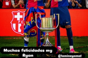 拉菲尼亞配文寫道:“祝賀亞馬爾,我真的很愛你,我的小兄弟!”